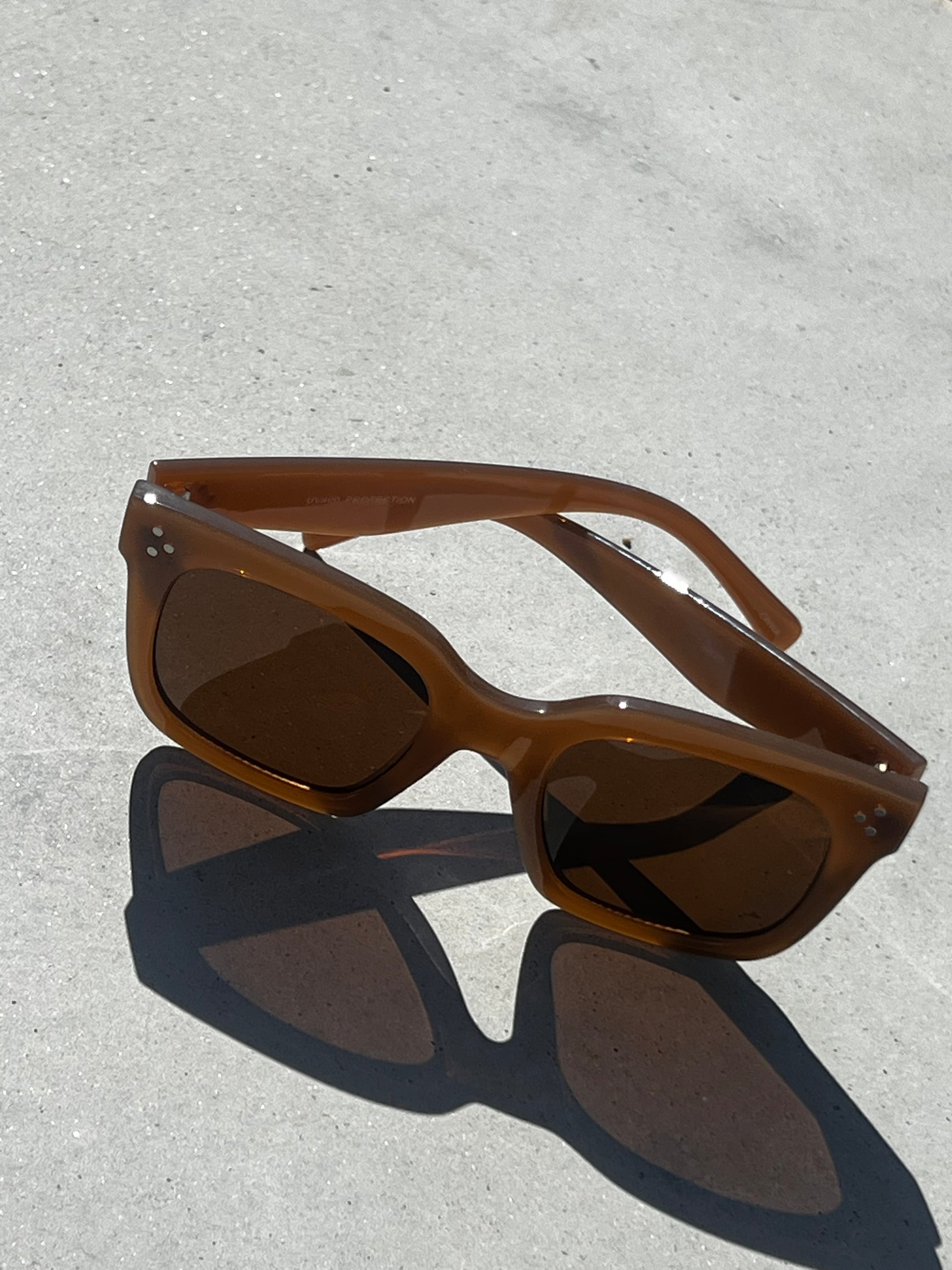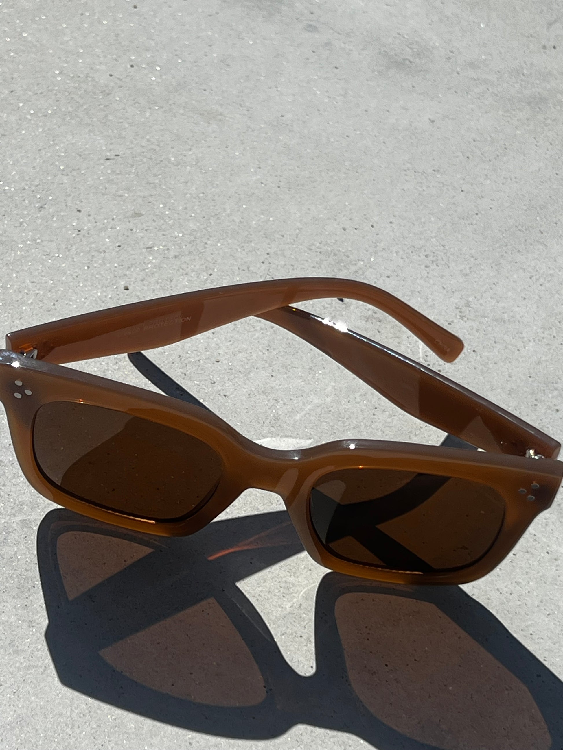 Elevate your style with Cheeky, the must-have tan square sunglasses for every occasion. Perfect for a cute café date or any casual outing, these shades will add a touch of charm to your look. Don't miss out on this versatile and trendy accessory!